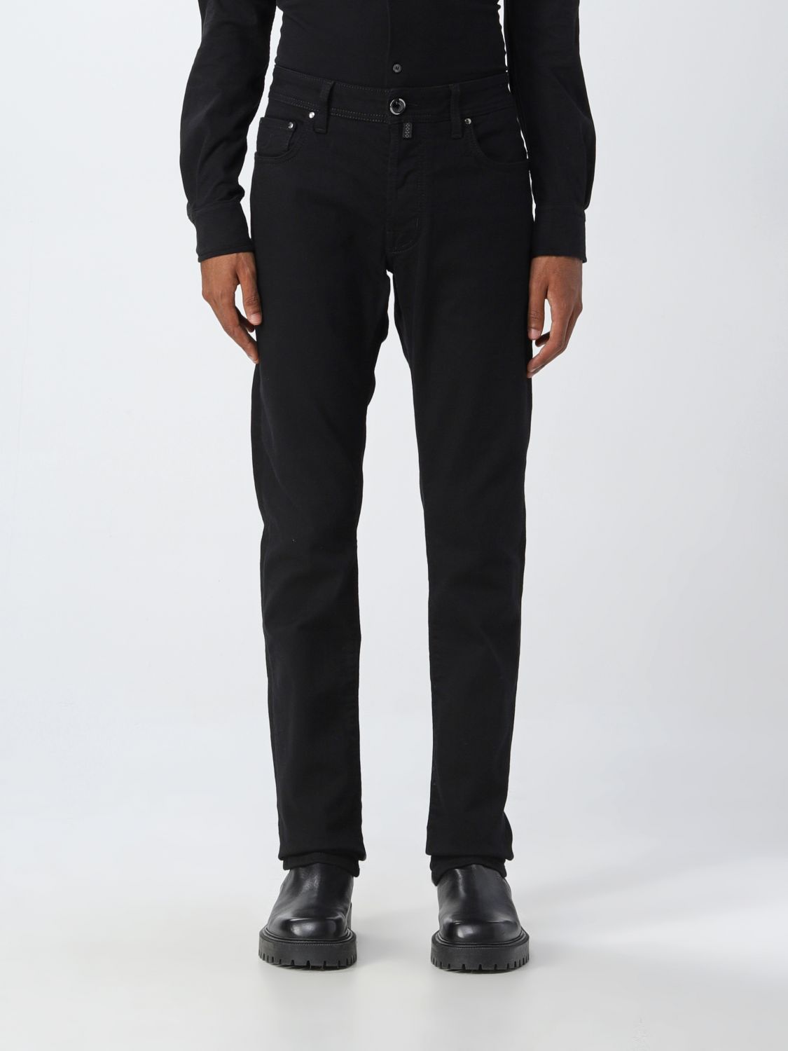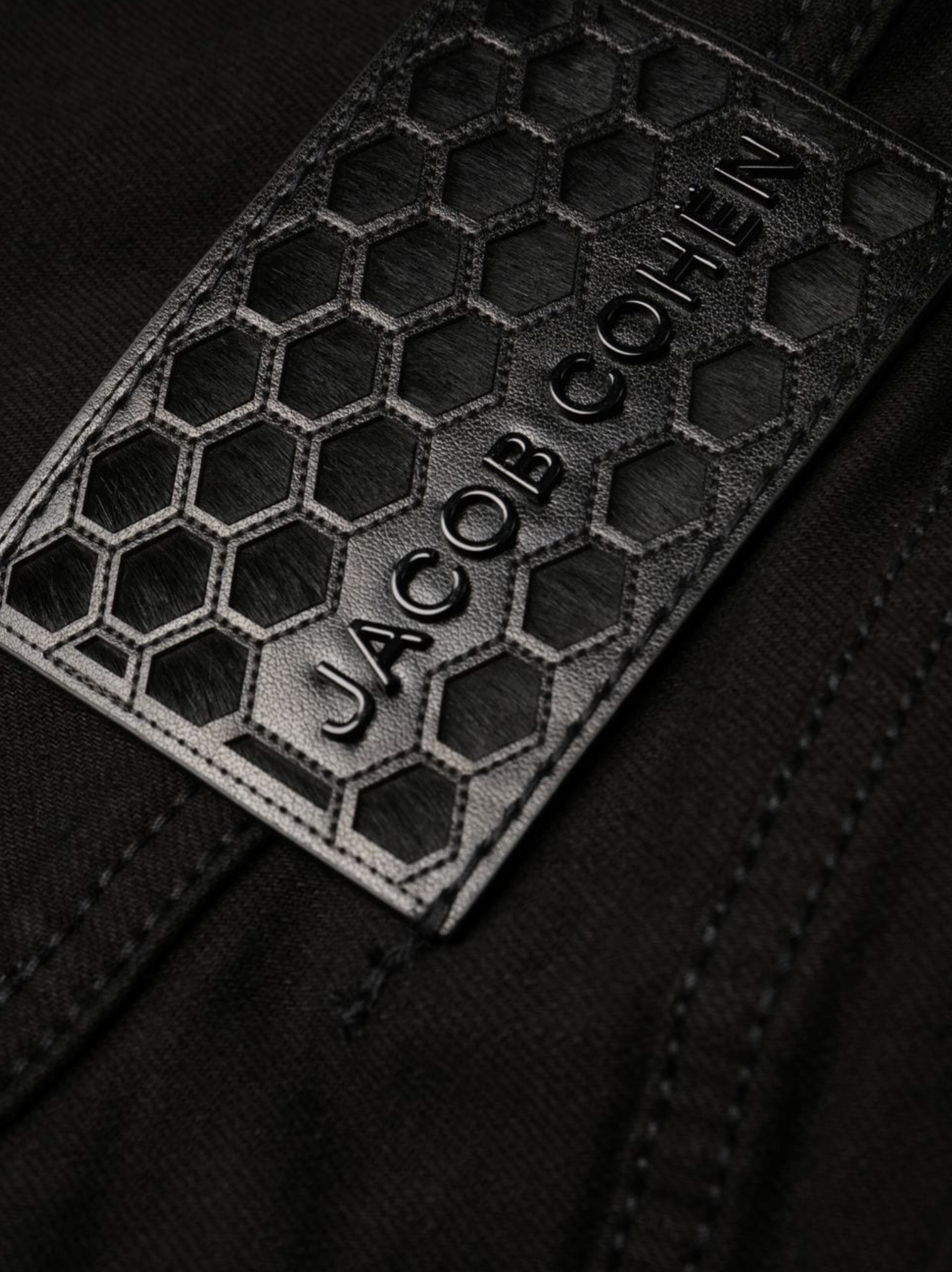 Jacob Cohen denim in black color, Bard model, slim fit, back patch with brand logo, buttons closure. Made in Italy