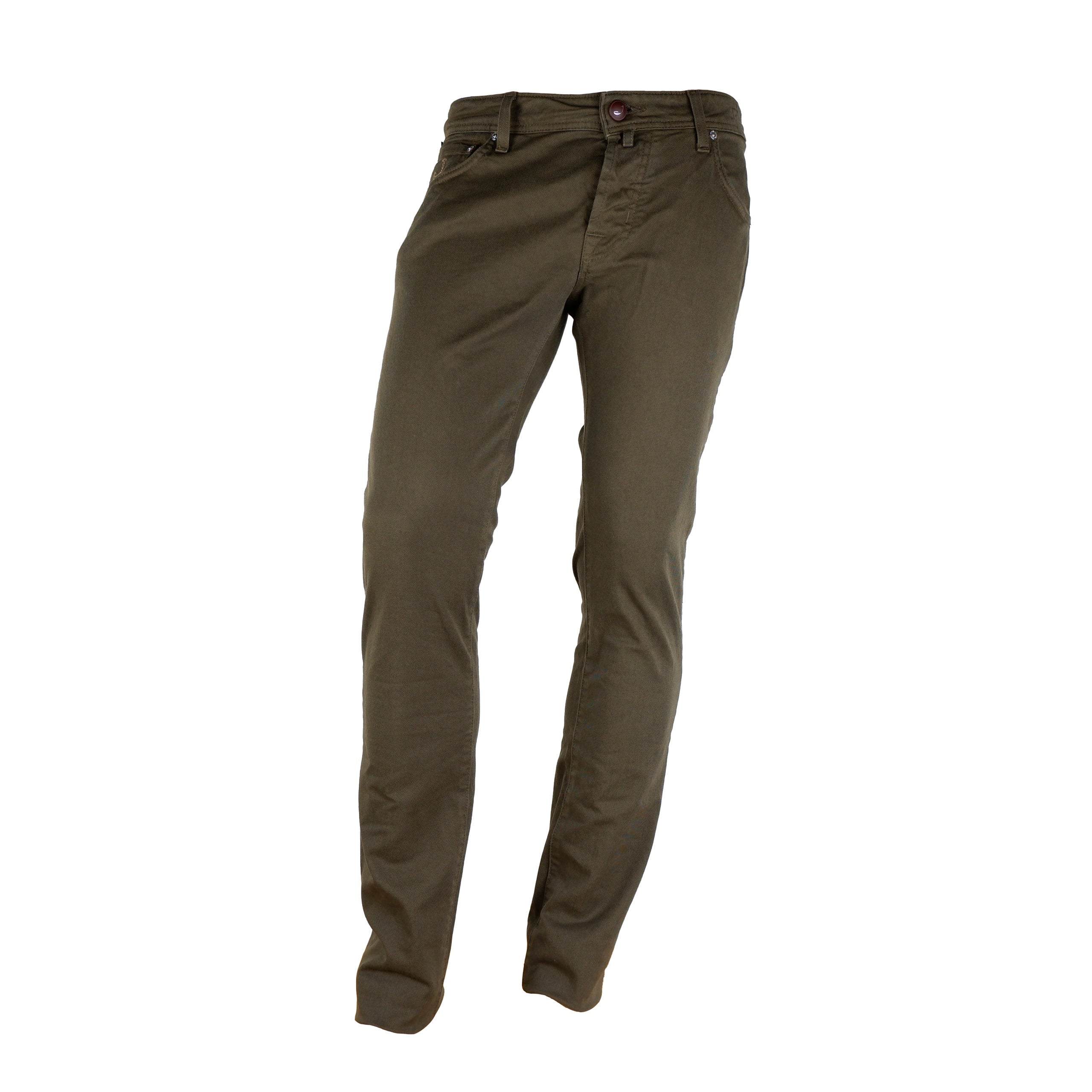 Jacob Cohen 5-pocket brown jeans, regular fit, with brown pony skin patch. Made in Italy